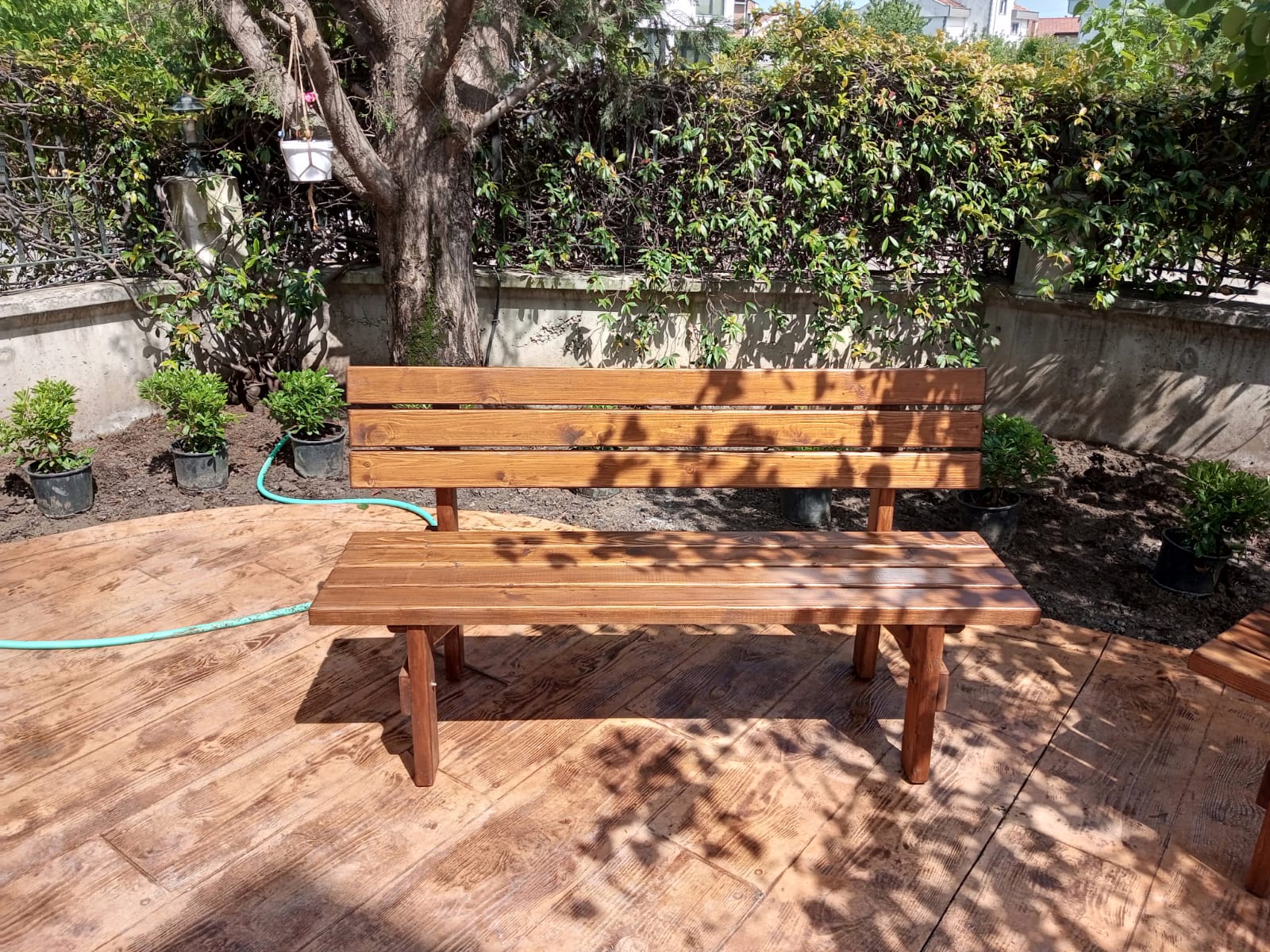 Su bazlı burma rengi Hemel Prime vernik ve cila kaplı, 150 cm uzunluğunda bank