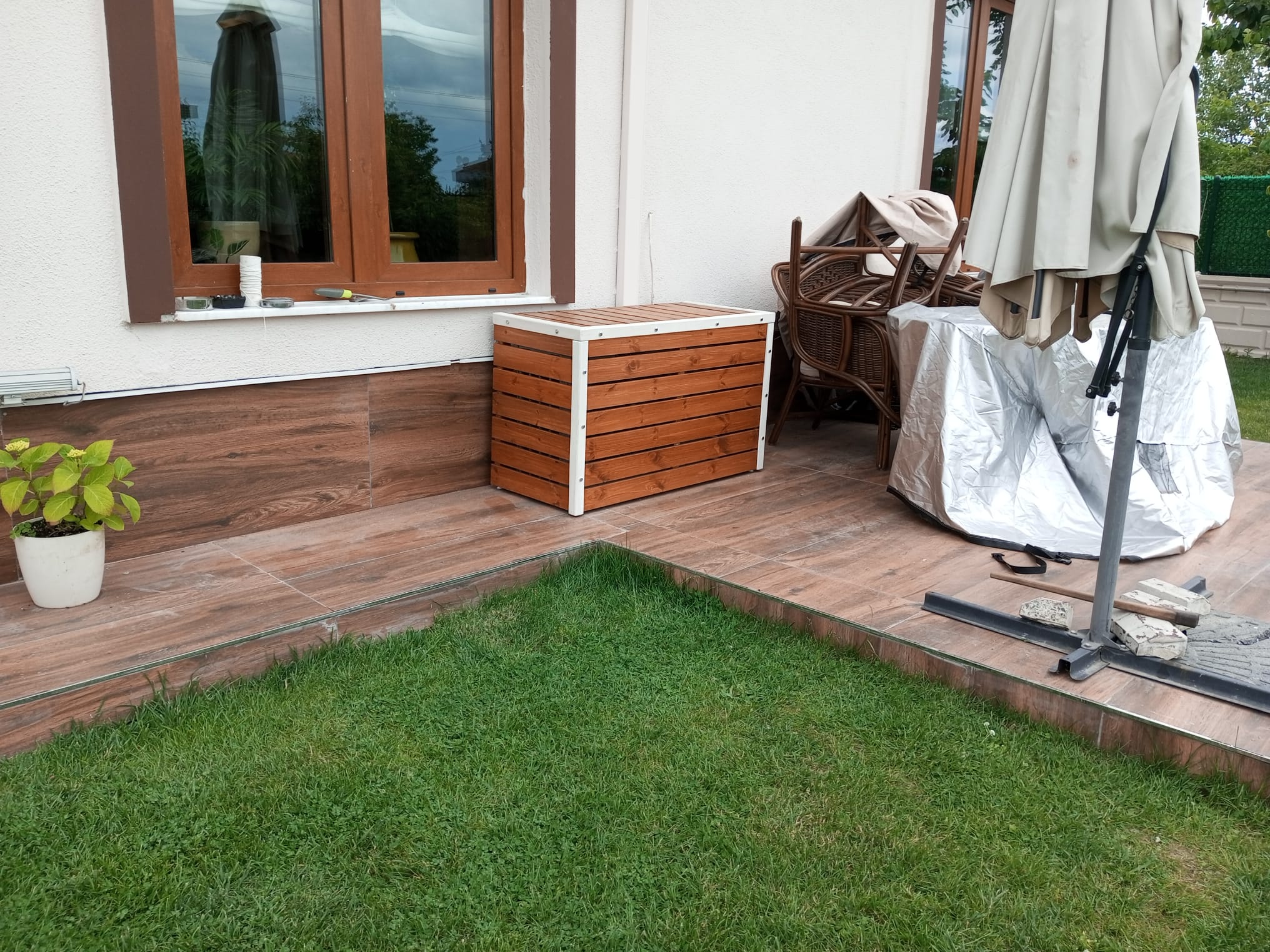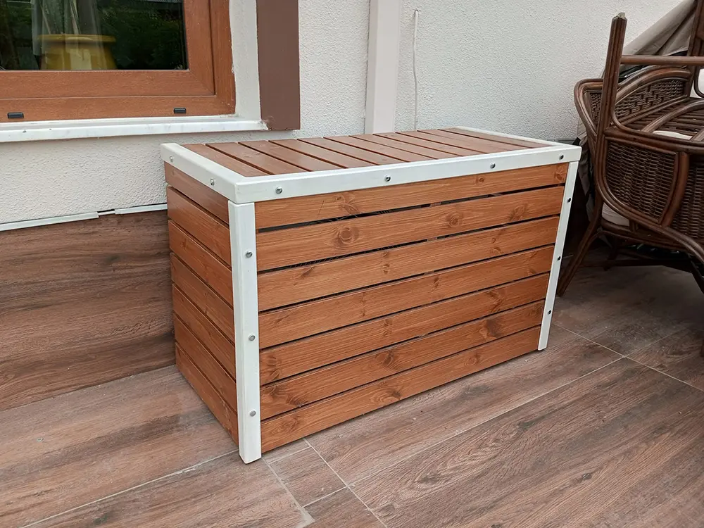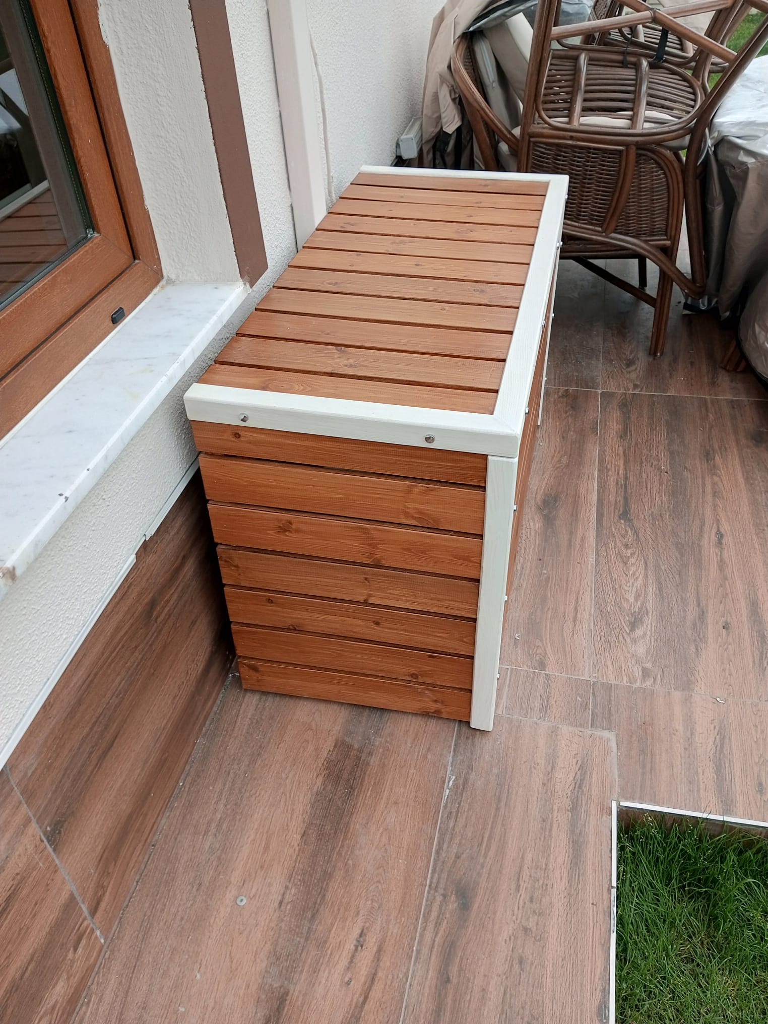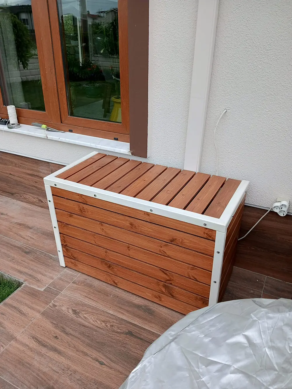 İthal çam ağacından tik rengi su bazlı vernik ile boyanmış portatif klima motoru kabini.