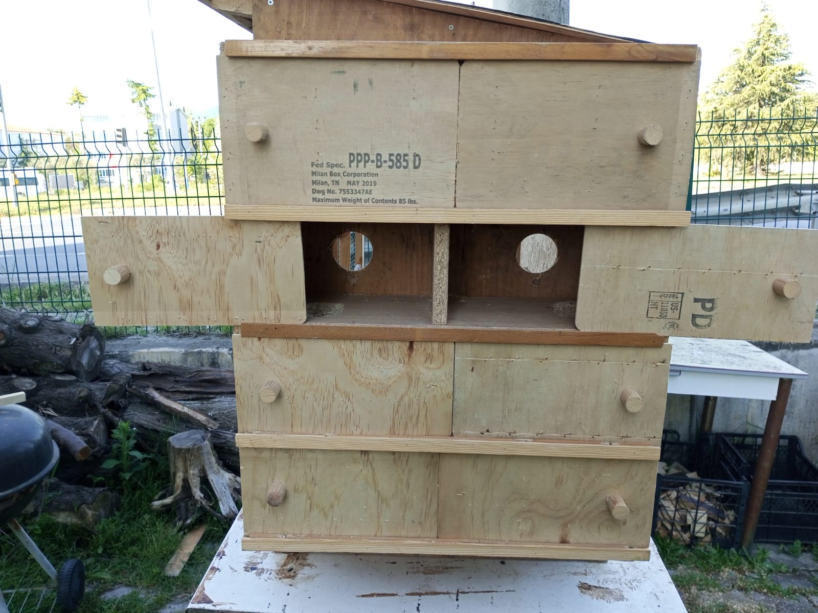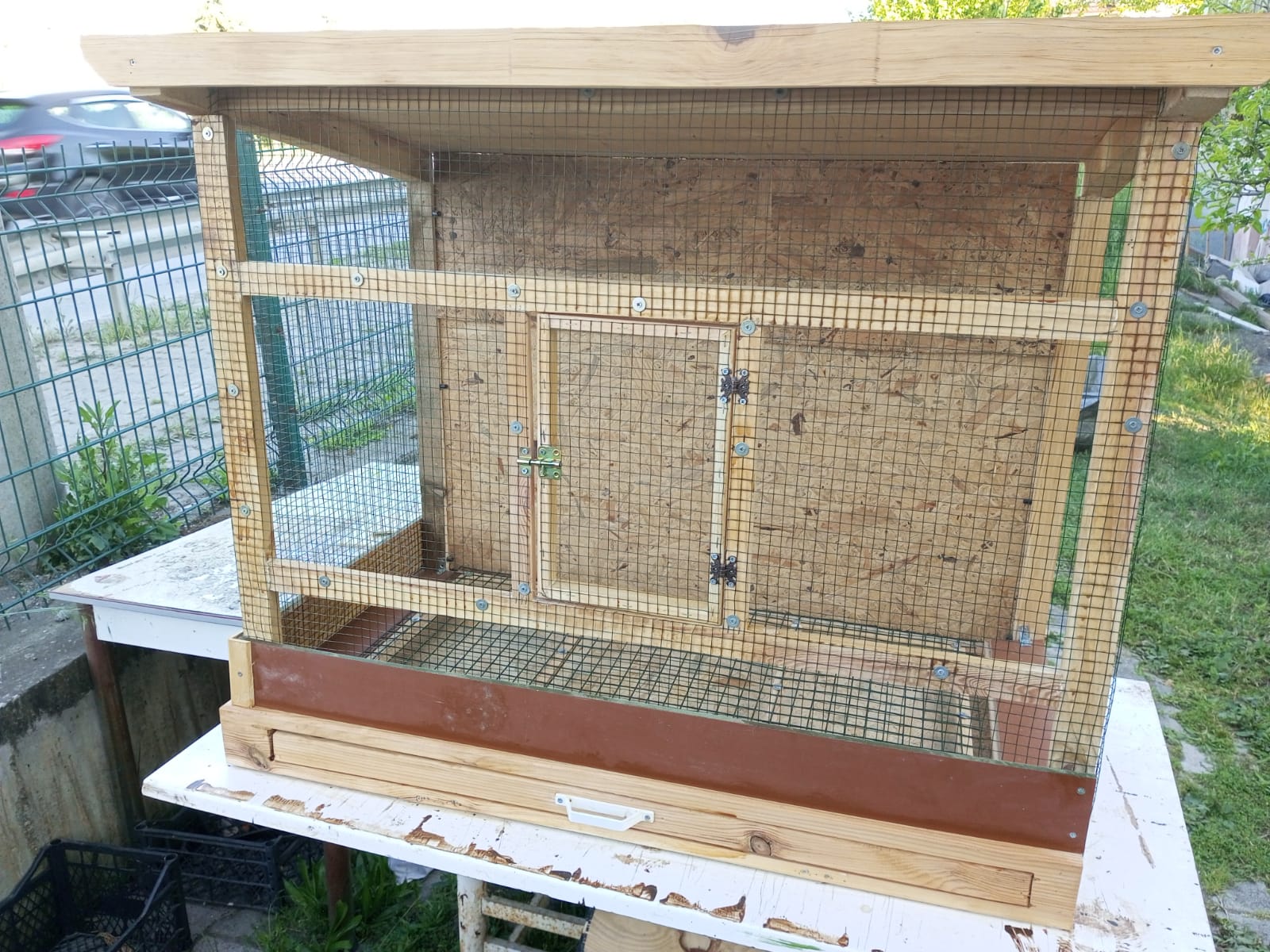 %70’i geri dönüştürülmüş malzemeden üretilmiş 50x100x60 cm (en, boy, yükseklik) ebatlarında folluklu muhabbet kuşu kafesi.