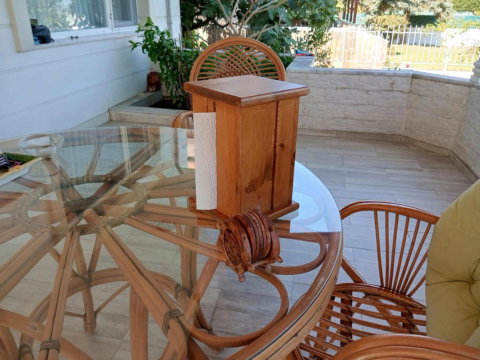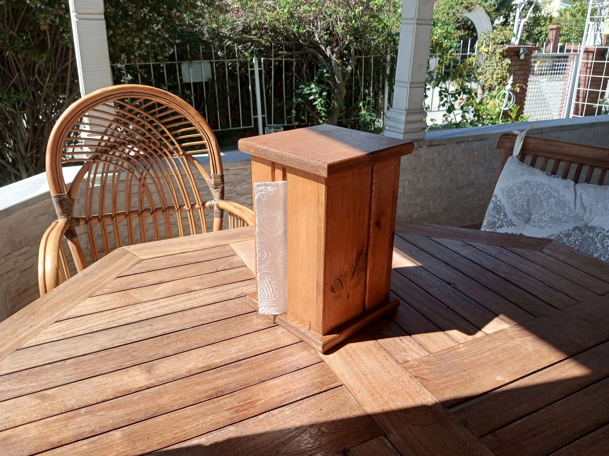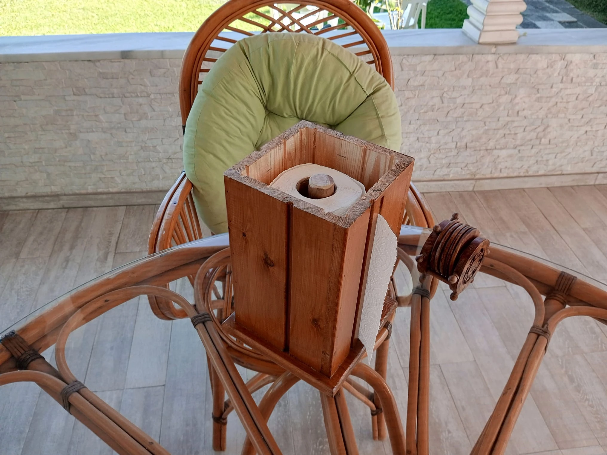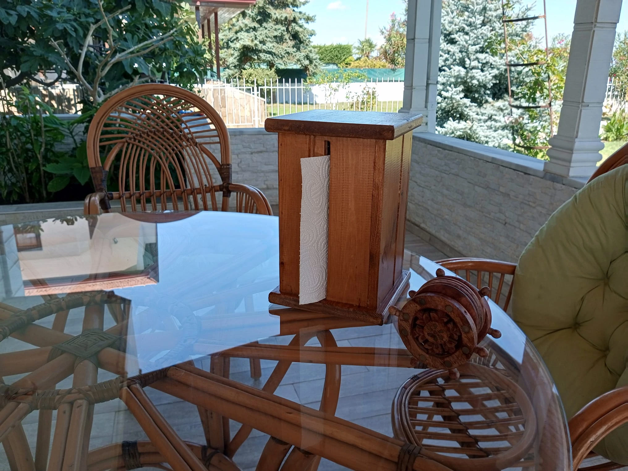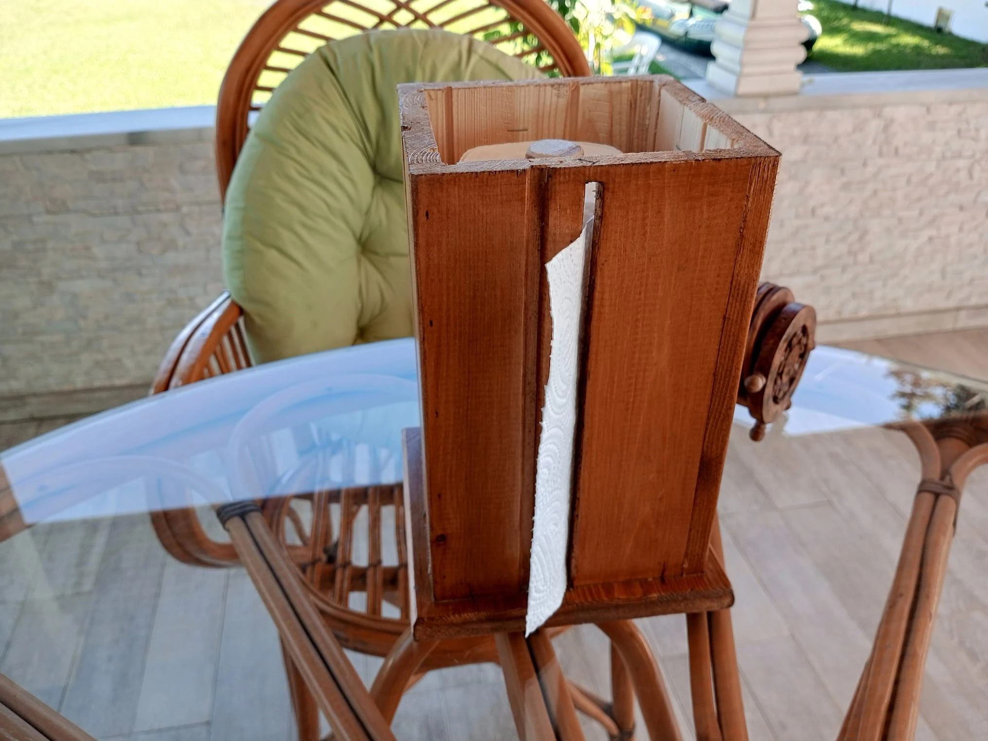Çam ağacından, tik renginde, kapalı tasarımlı rulo peçetelik