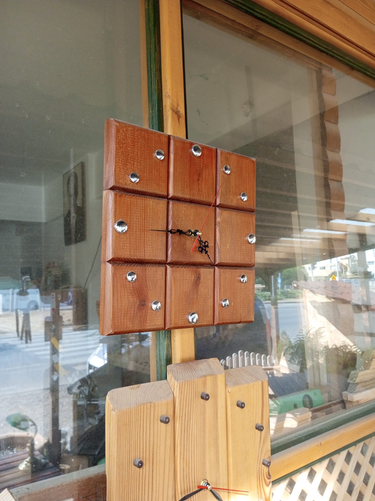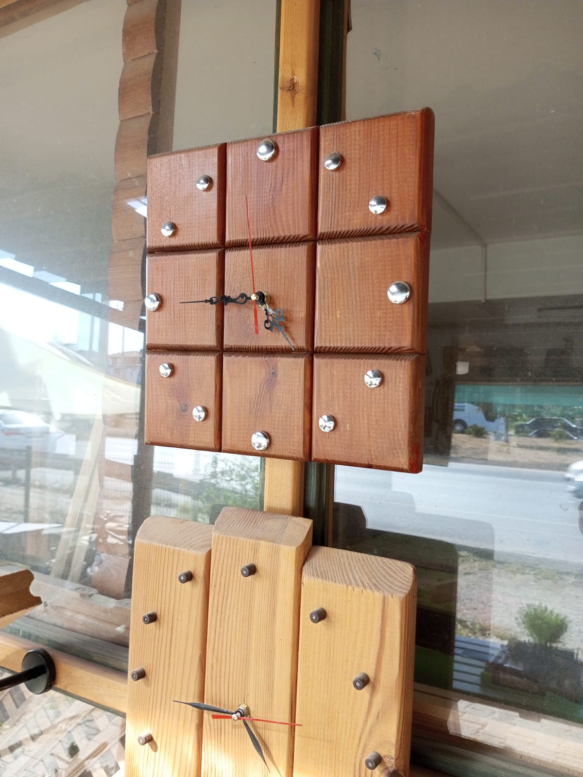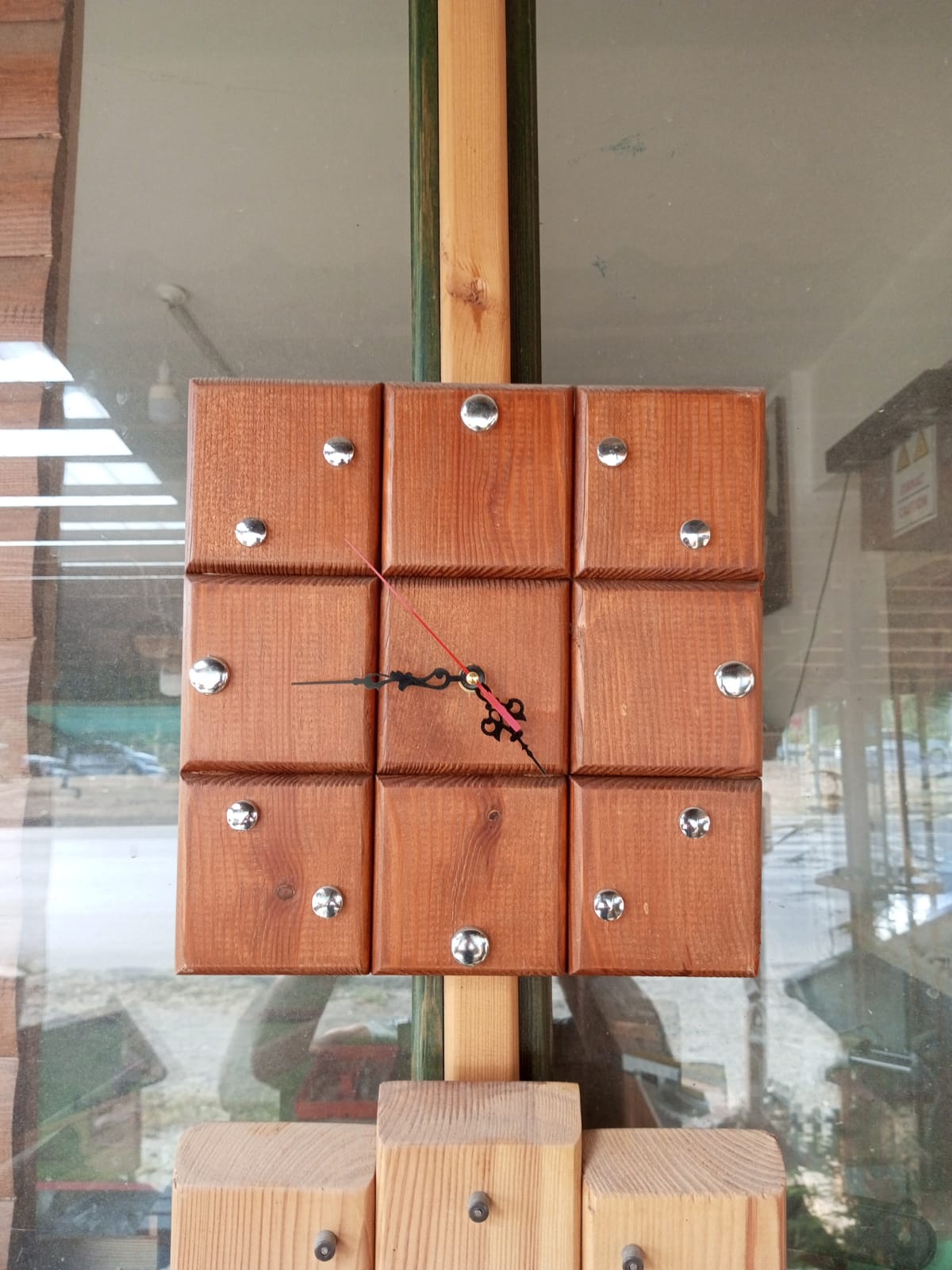 30×30 cm ebatlarında dekoratif ahşap tablalı duvar saati.